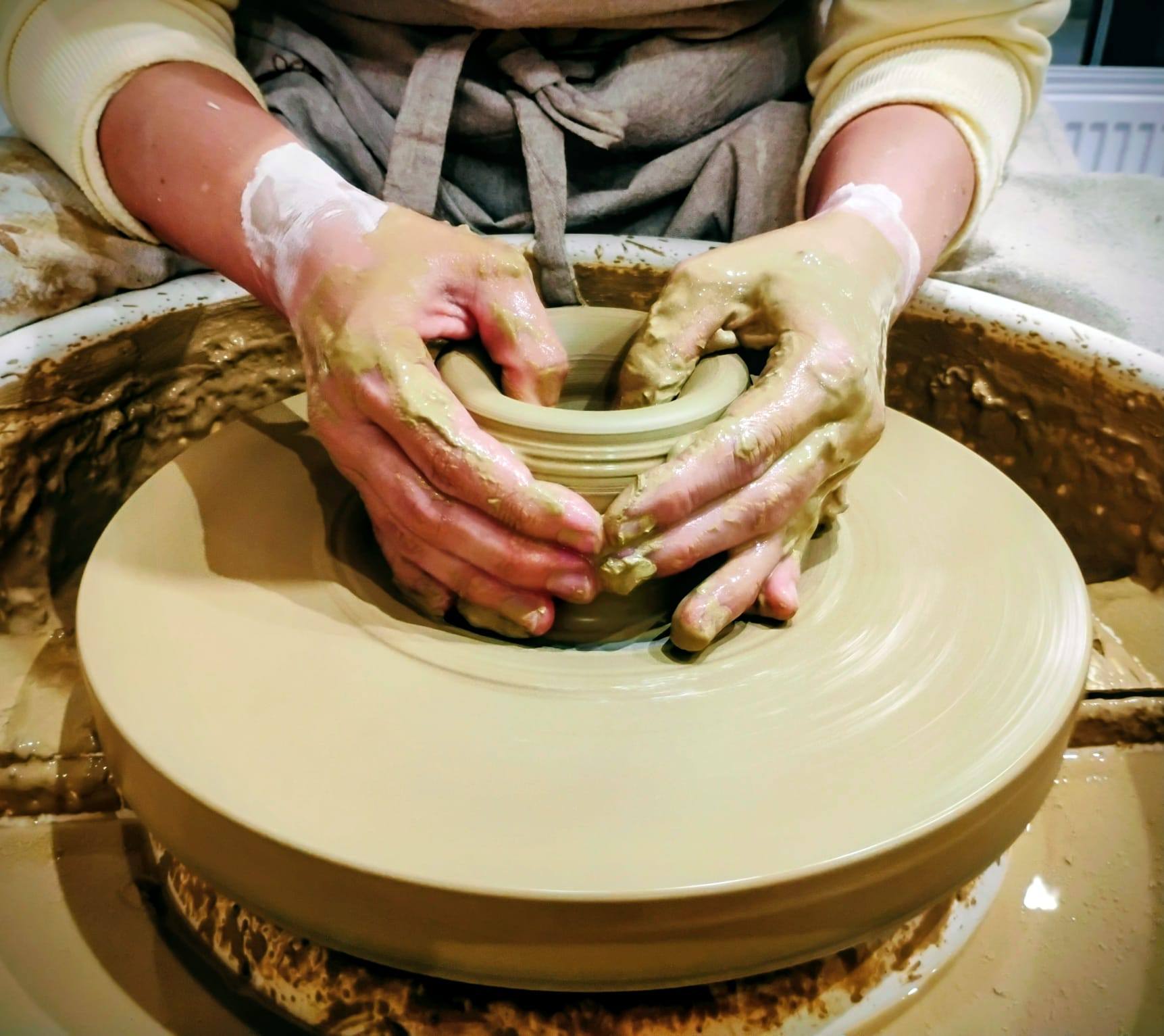 Najskôr si na hrnčiarskom kruhu vytvoríš svoj hrnček – vlastnými rukami, v príjemnej atmosfére ateliéru.